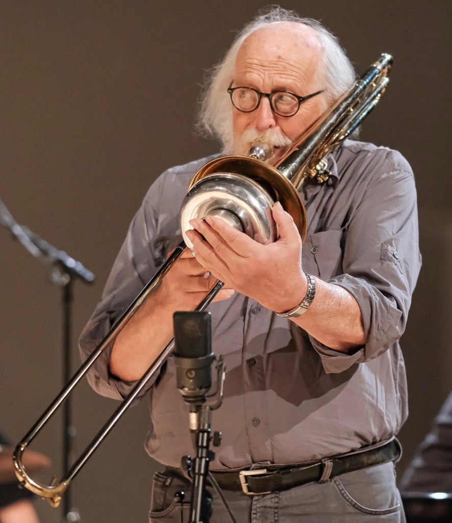 Schiaffini, born in Rome in 1942, studied music and composition with Karlheinz Stockhausen, György Ligeti, Vinko Globokar and electronic music with Franco Evangelisti. He lives in Rome. He plays trombone and tuba, composes and interprets contemporary music and improvises. Schiaffini is one of the pioneers of free jazz, he has worked with John Cage, Karole Armitage, Luigi Nono, Giacinto Scelsi and others and is co-founder of the chamber ensemble Nuove Forme Sonore and the Italian Instabile Orchestra. He performs worldwide, has an extensive discography and several publications on trombone techniques and improvisation. http://www.giancarloschiaffini.com/